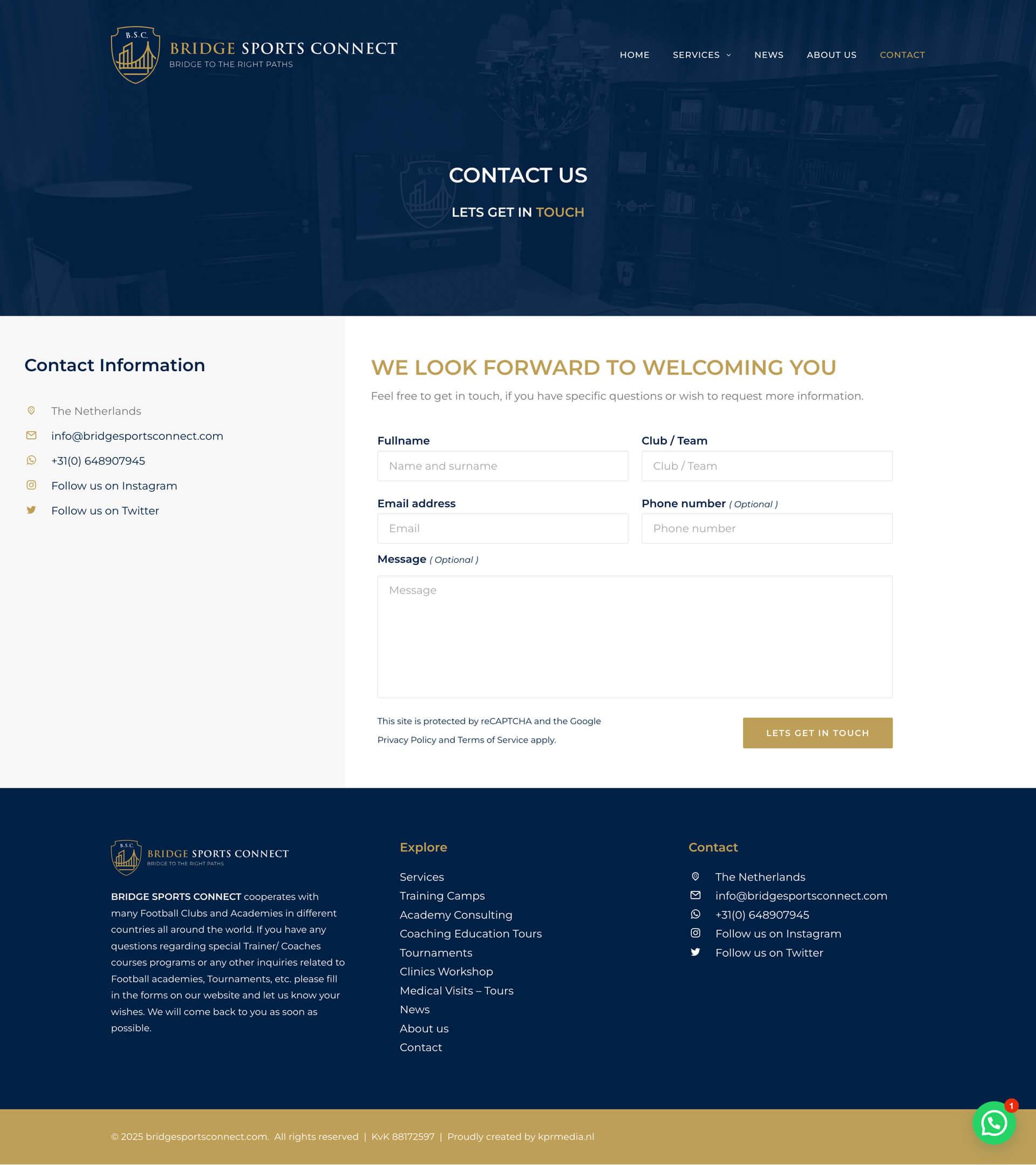 Het resultaat is een merkidentiteit die staat als een huis – krachtig, herkenbaar en helemaal in lijn met waar Bridge Sports Connect voor staat. De website biedt niet alleen een soepele gebruikerservaring, maar straalt ook het enthousiasme uit dat het bedrijf in elk event stopt.